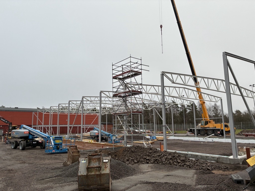 Stommen till den nya hallen är påbörjad. Bild från november 2025. Foto: Kristinehamns kommun.