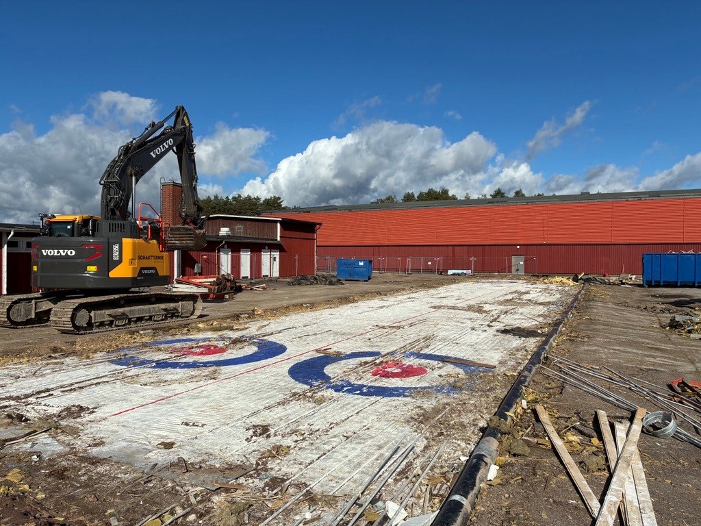 Vi är igång med byggnationen och utför markarbeten för grundläggningen av byggnaden. Vi räknar med att ha uppe stommen inklusive tak vid årsskiftet och projektet ska vara färdigt till curlingsäsongen 2026/2027.