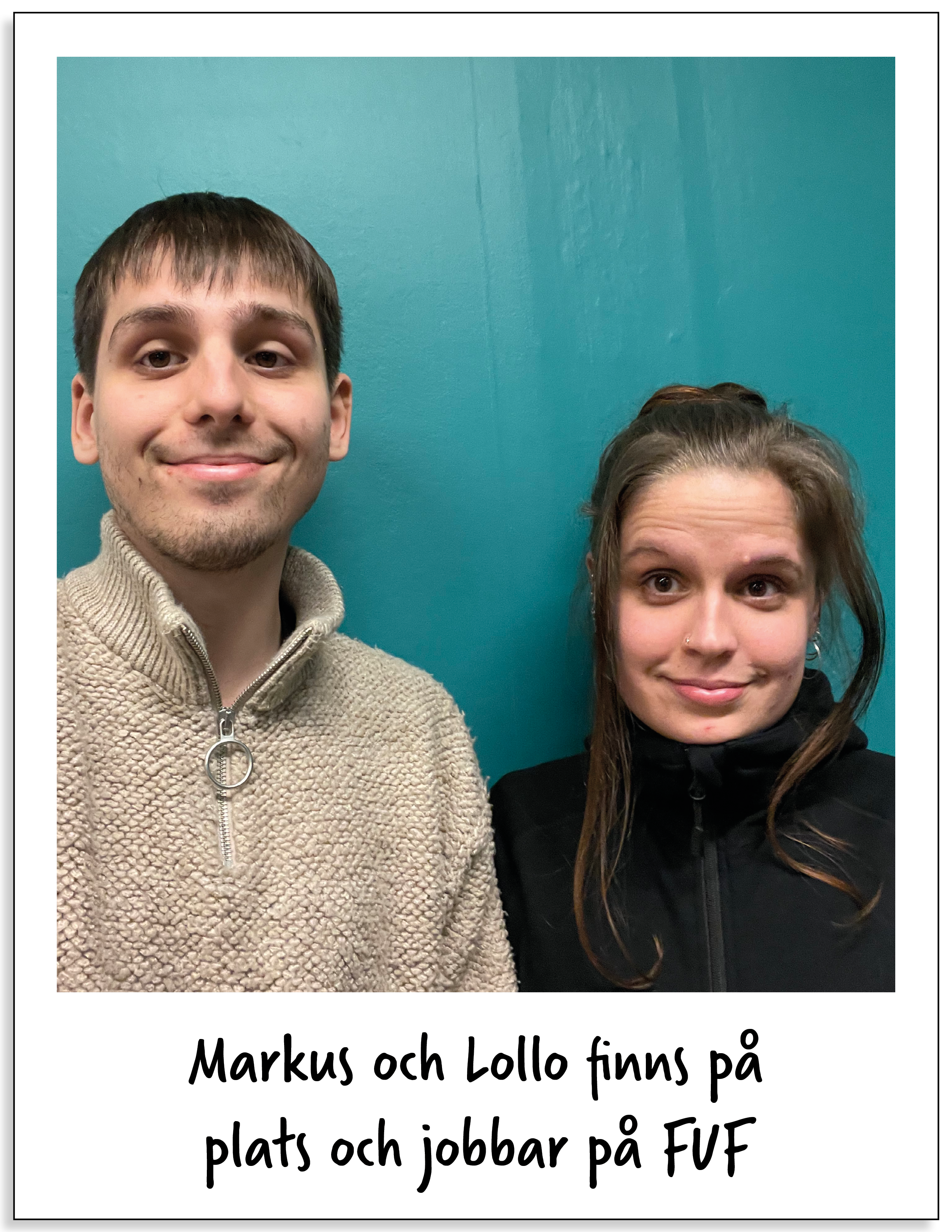 Det är Lollo och Markus som håller i FUF. De har jobbat på fritidsgården sedan 2019 och 2020. De finns på plats varje tillfälle.