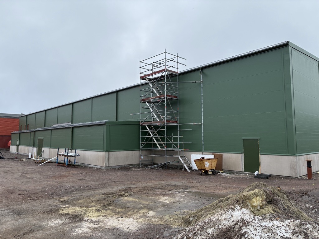 Hallen utvändigt i mars 2026. Foto: Kristinehamns kommun.