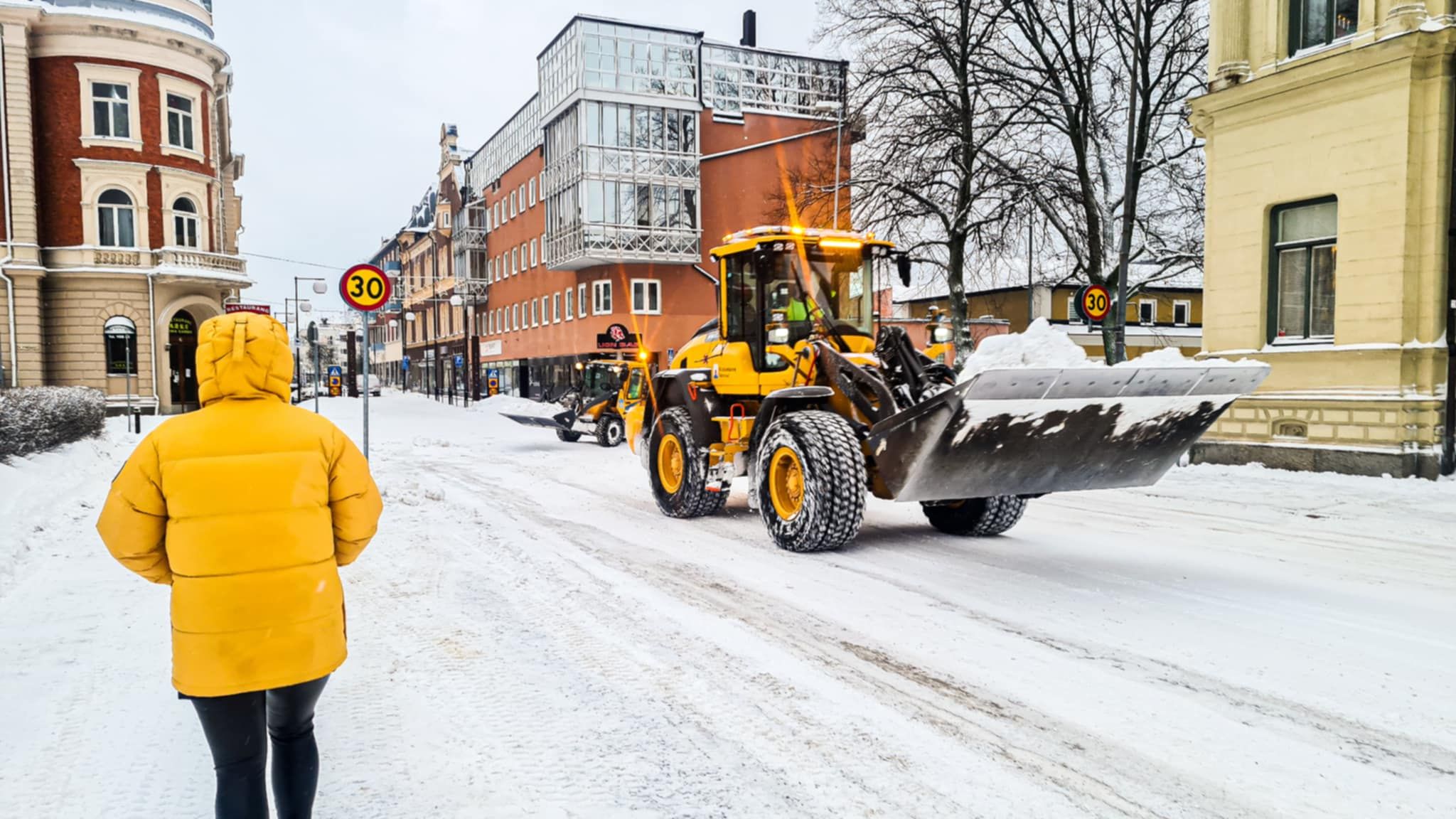 Snöröjning i centrala Kristinehamn. Foto: Kristinehamns kommun.